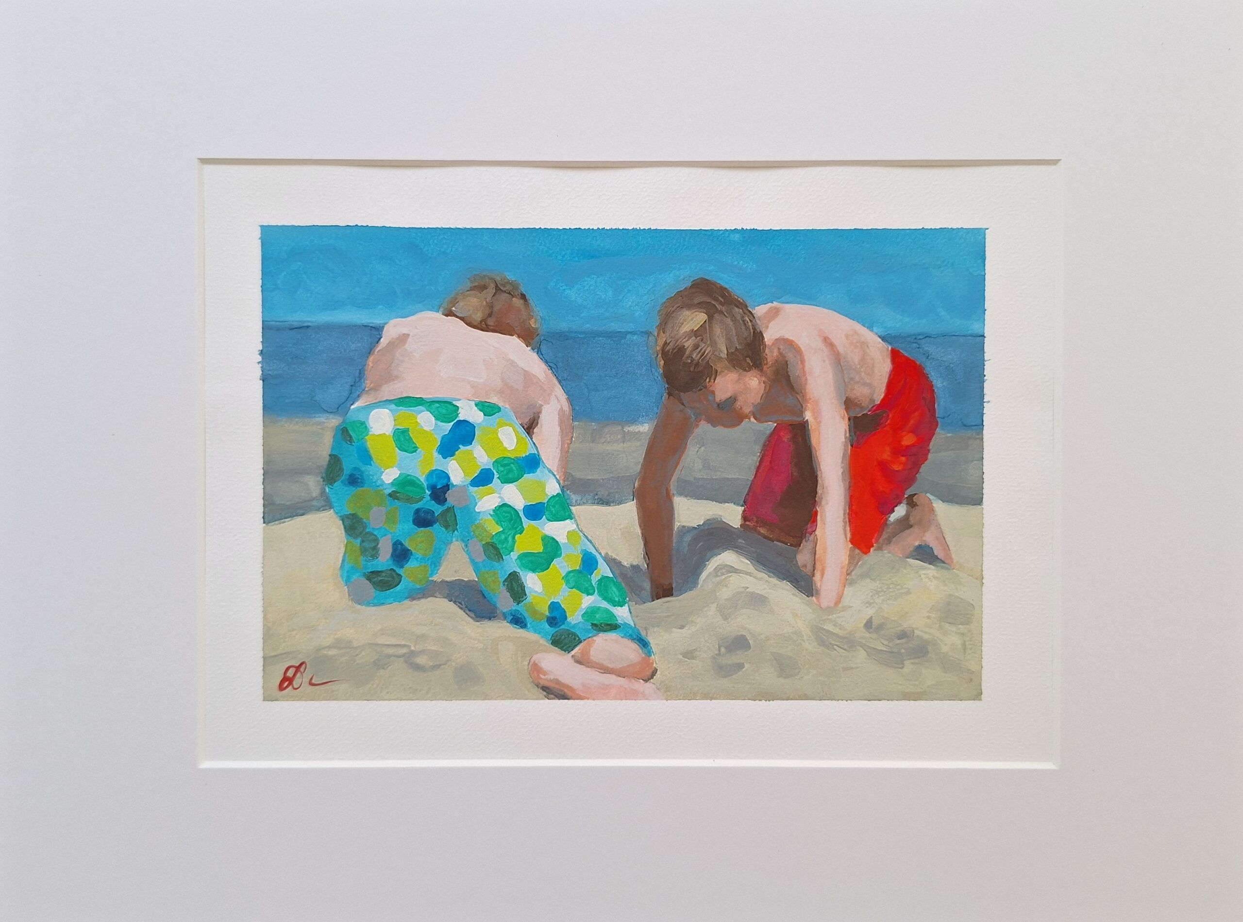 Dit unieke schilderij is met de hand gemaakt met hoogwaardige gouacheverf op zuurvrij papier. Het kunstwerk wordt geleverd met een op maat gemaakte passe-partout, klaar om ingelijst te worden.