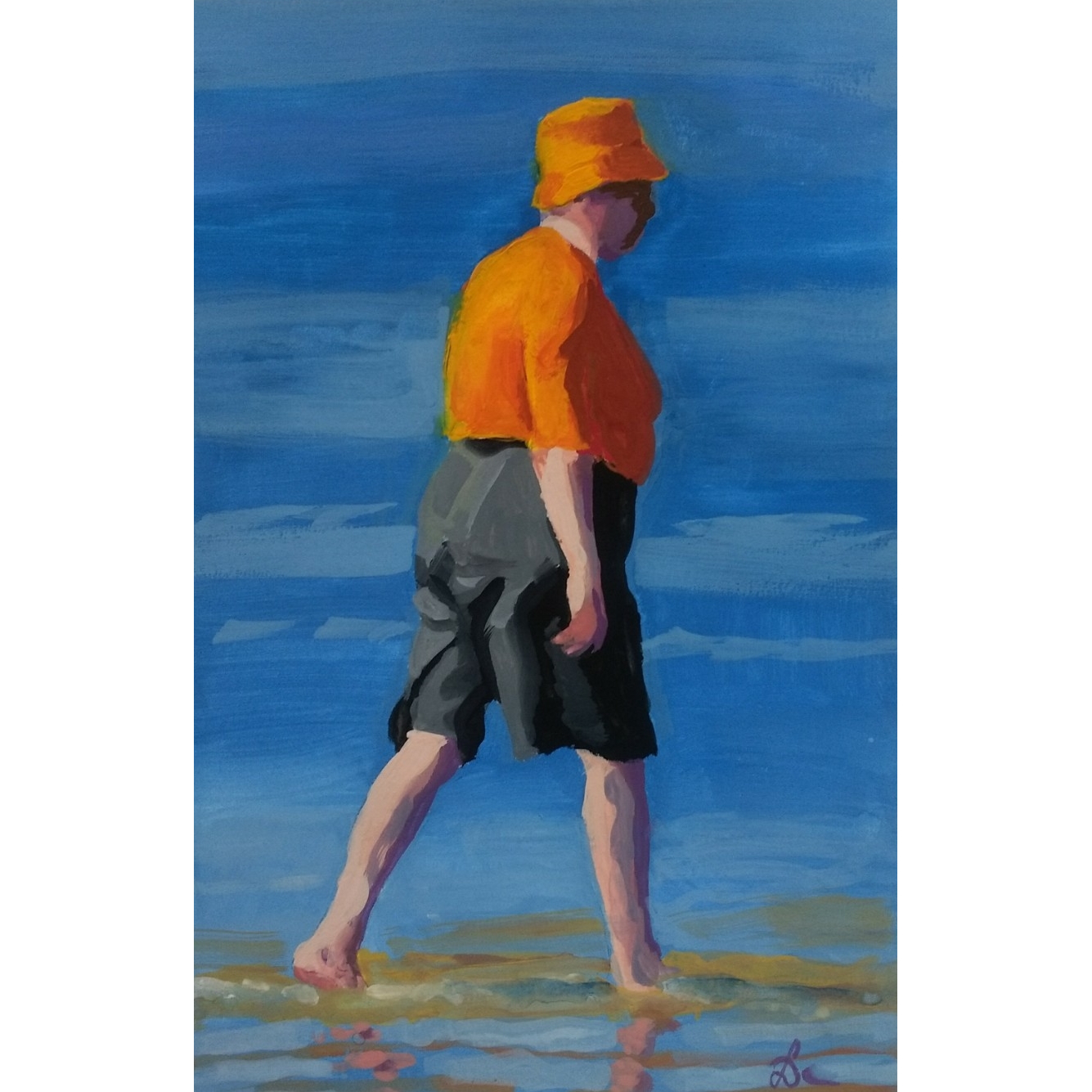 Omdat gouache een watergedragen verf is dient het schilderij achter glas ingelijst te worden.